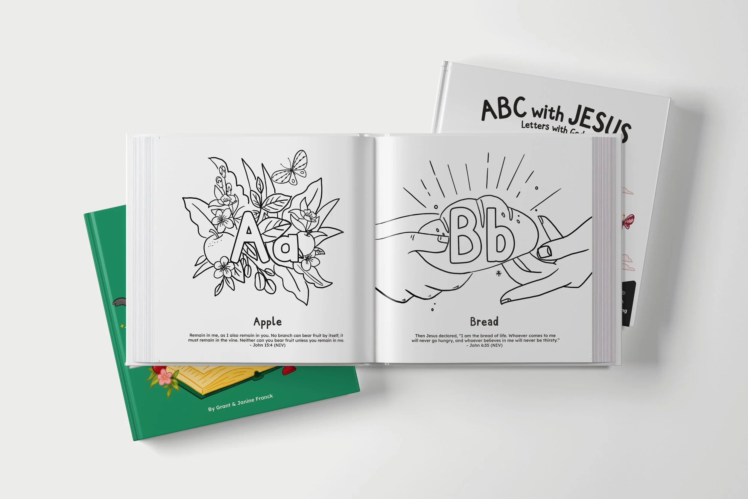 Each letter of the alphabet introduces a meaningful word paired with scripture, allowing children to learn about God’s love while expressing their creativity. Perfect for nurturing faith and imagination, this book encourages children to explore God’s Word in a way that’s fun and engaging.